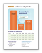 A diagram and chart that explain the wide variation that can emerge from life insurance policy valuation. Download